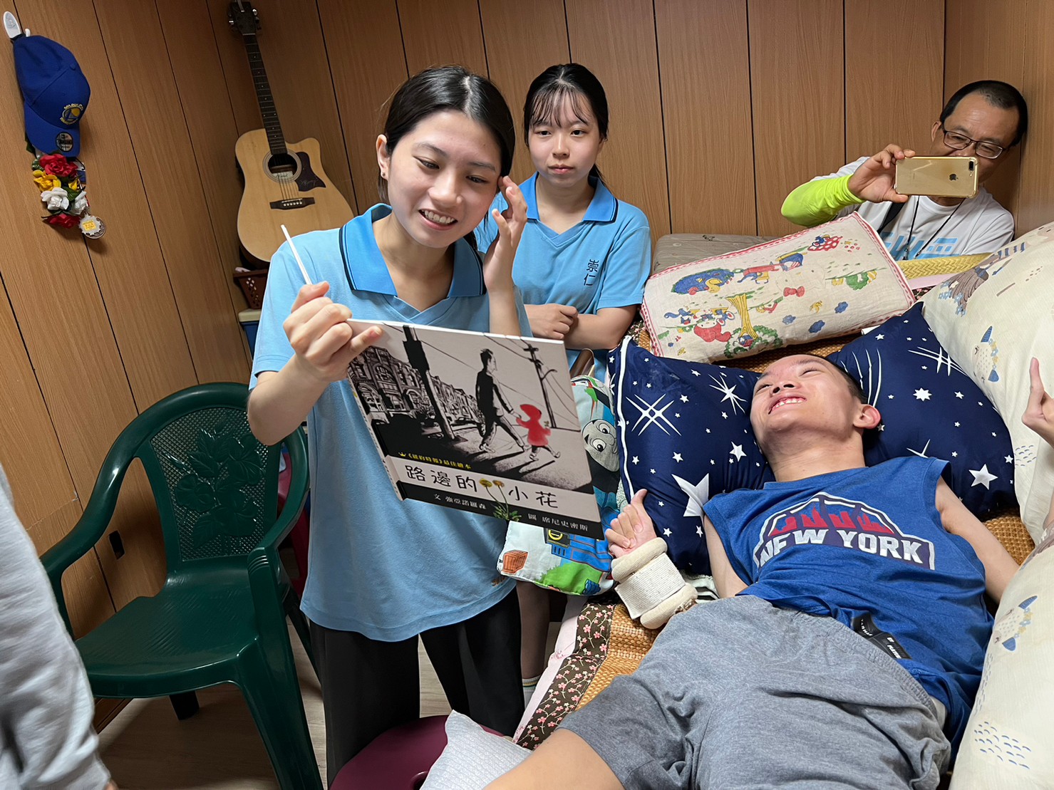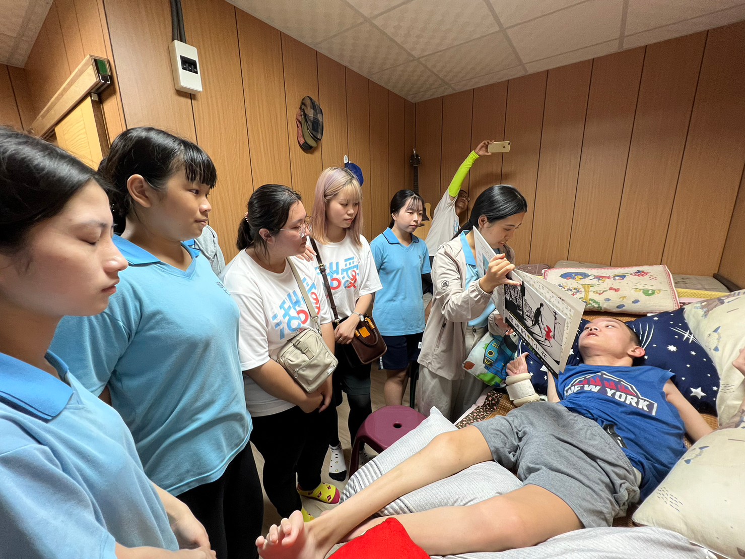 在此偏鄉服務的內容中,最為特殊之安排,即是一同來到崇仁生教中心謝昌任主任的好友,並且他也是一位重度的腦性麻痺患者,但他的生命圖像,卻不因如此之處境而顯出悲觀,反而在青年學子的表演與說書故事中,用其生命中最大的力量,努力的回應與相和之,讓青年學子感受到,生命無論處於何種處境,都可以是樂觀的、是有力量的、是溫暖的。我們可以說,他為青年學子上了最棒的一課。
