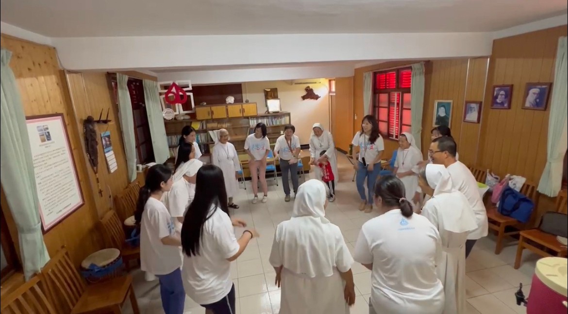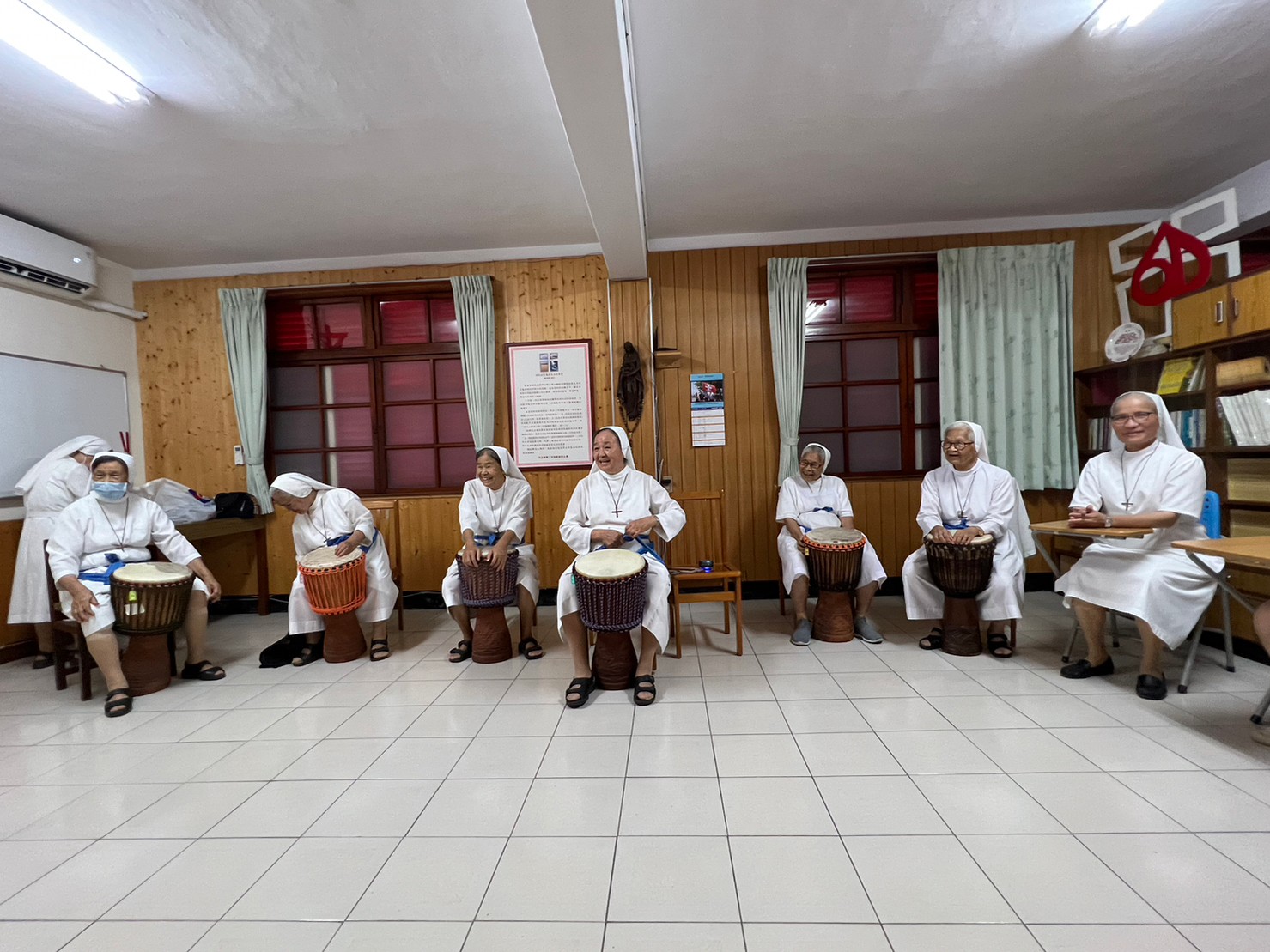 同時,以護理起家的崇仁,在參與服務的護理科學生,依其專業服務之訓練,進一步與聖十字架慈愛修女會的長輩修女,進行深度互動與交流。六七位年長修女在健康樂活站所學之打鼓,也藉此表演給青年學子,作為迎賓之用。同時,還將她們生命中的好故事,透過這樣的相遇而分享,對此,不就是的青銀同樂共學共融,這群青年學子的到訪,帶給年長修女們不少笑容。