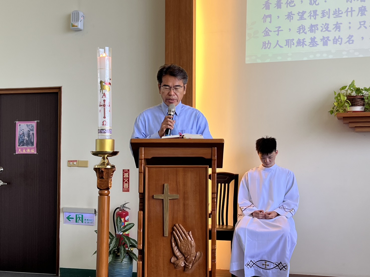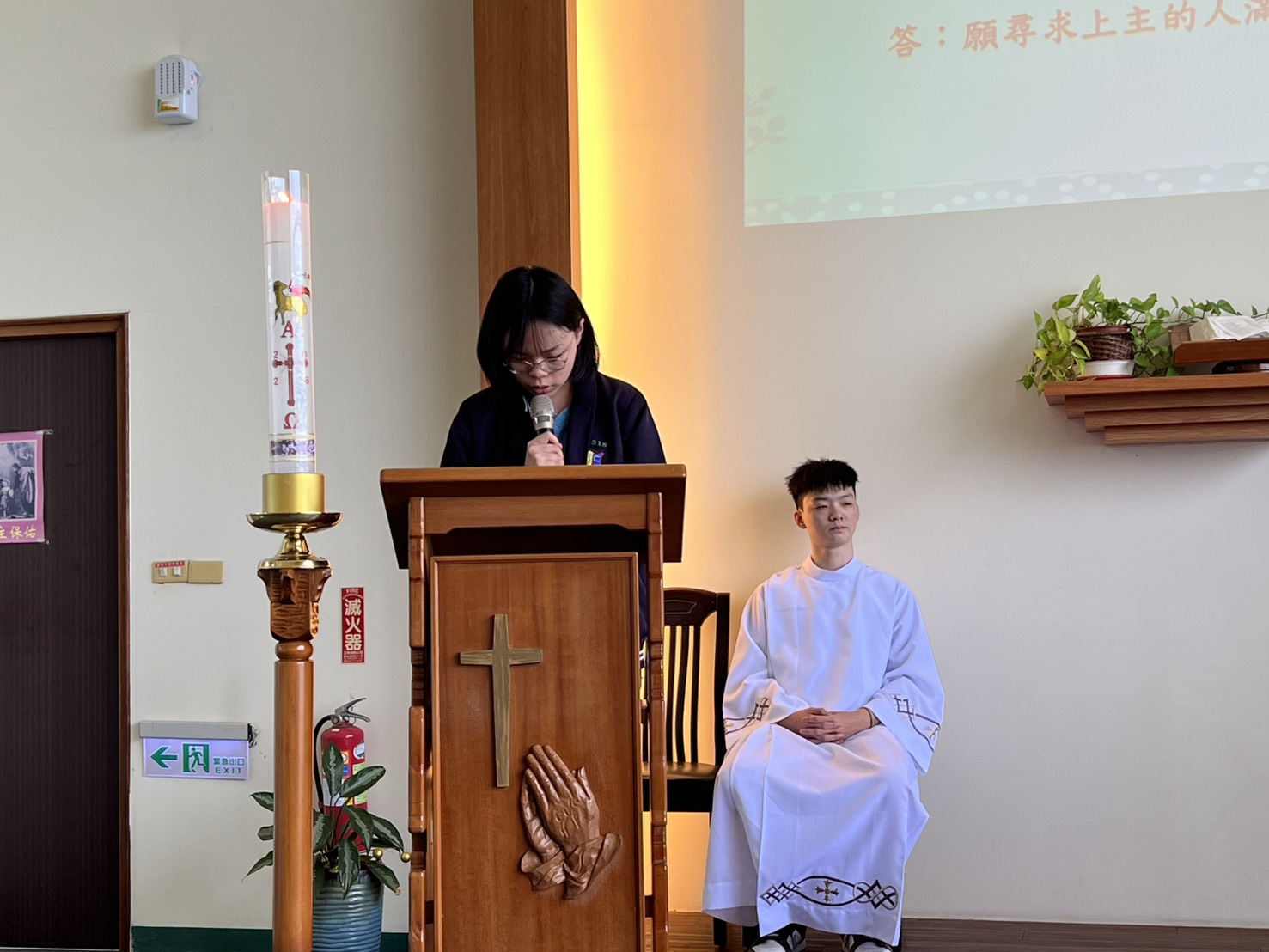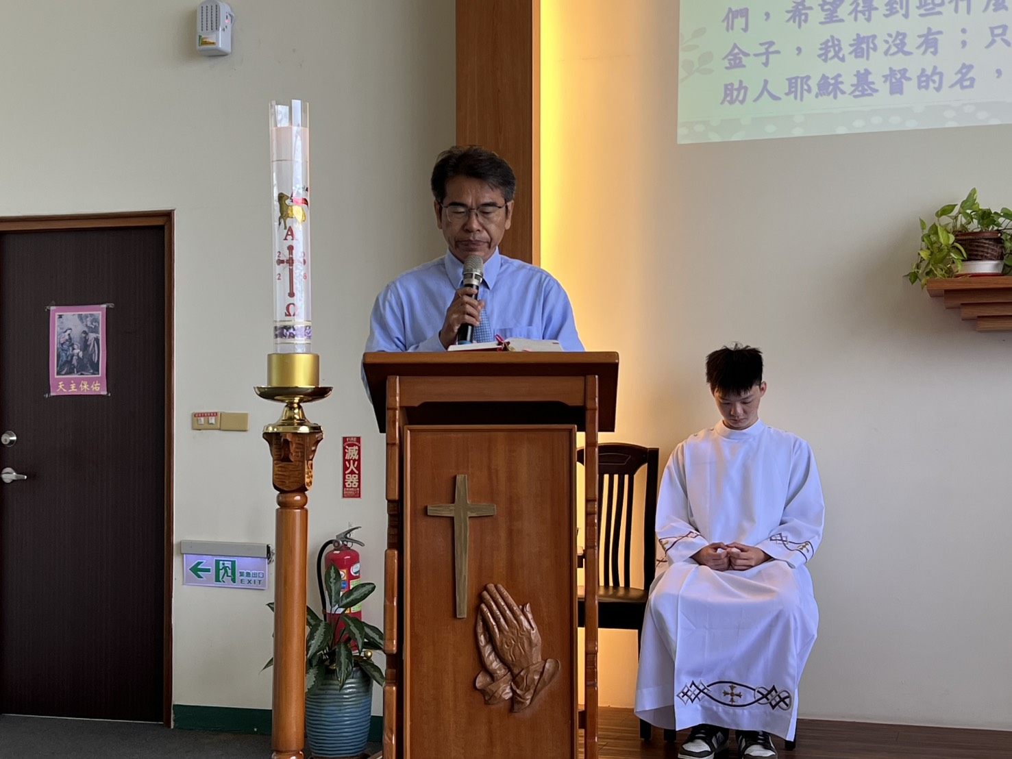 今天的校園彌撒,校長也來到我們當中,與我們一起感恩與祈禱。彌撒後,校長也分送復活蛋給參與彌撒的同仁,並且還帶到二樓,分享給會計室、秘書室等行政與教學同仁們復活的喜樂。
