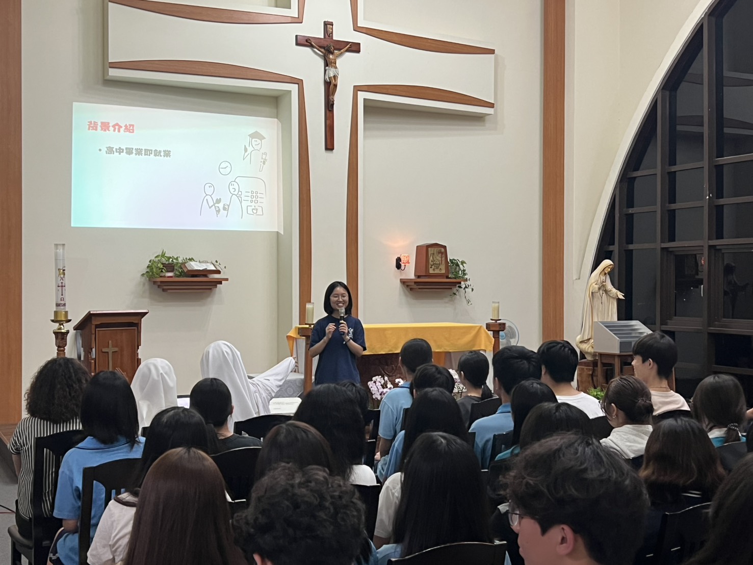 夜晚的崇仁,聖堂內滿滿的青年學子,為的是聆聽生命與聖歌。