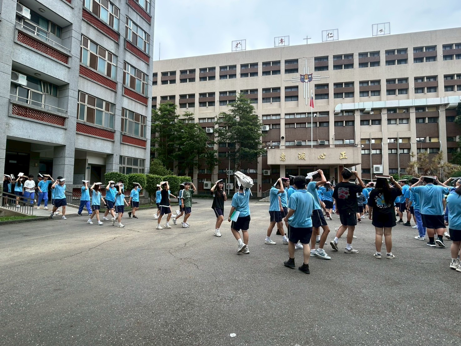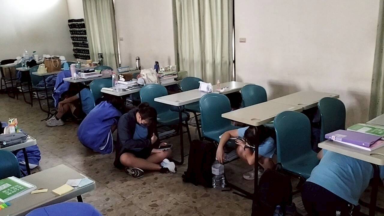 地震避難掩護演練