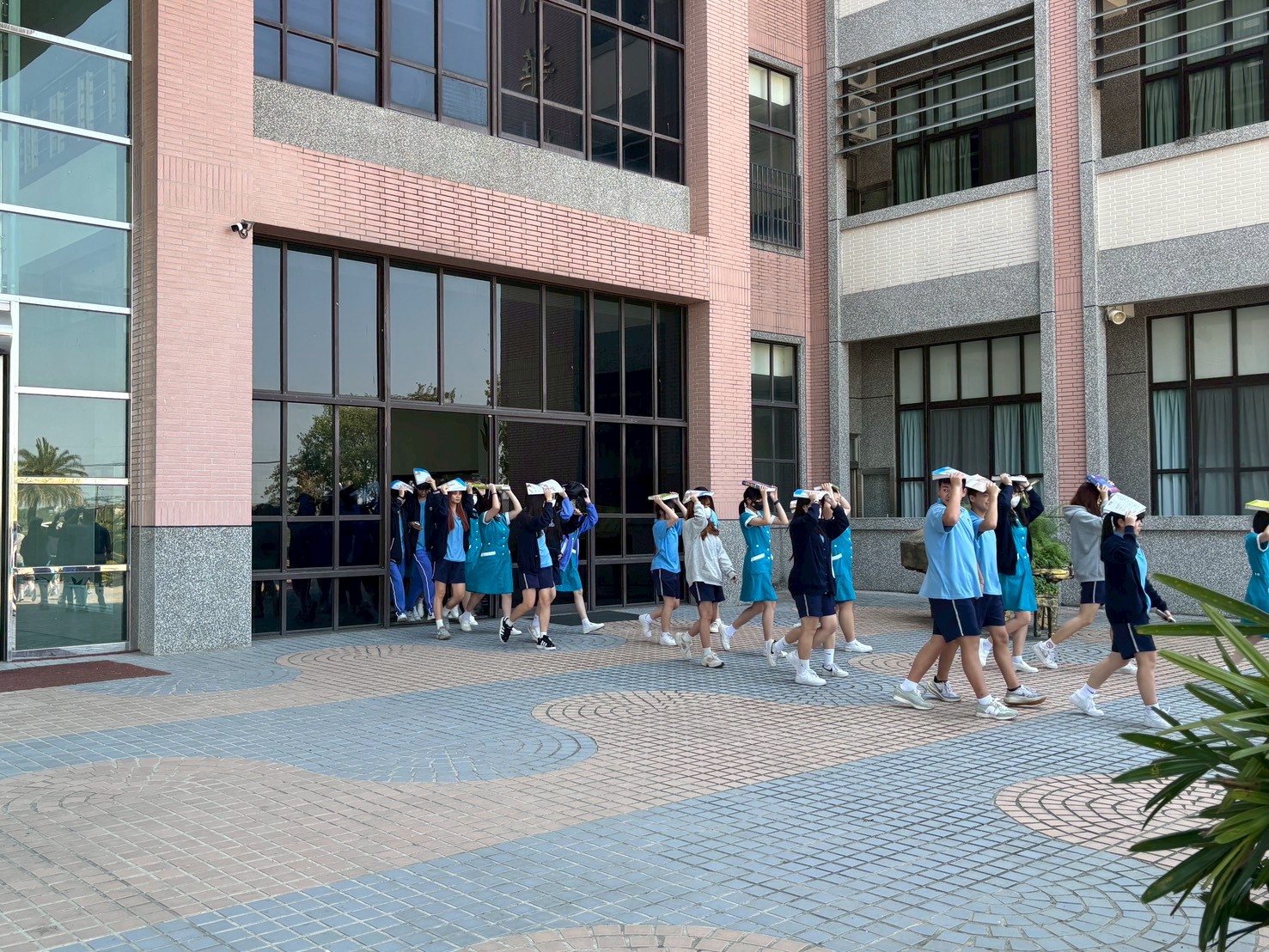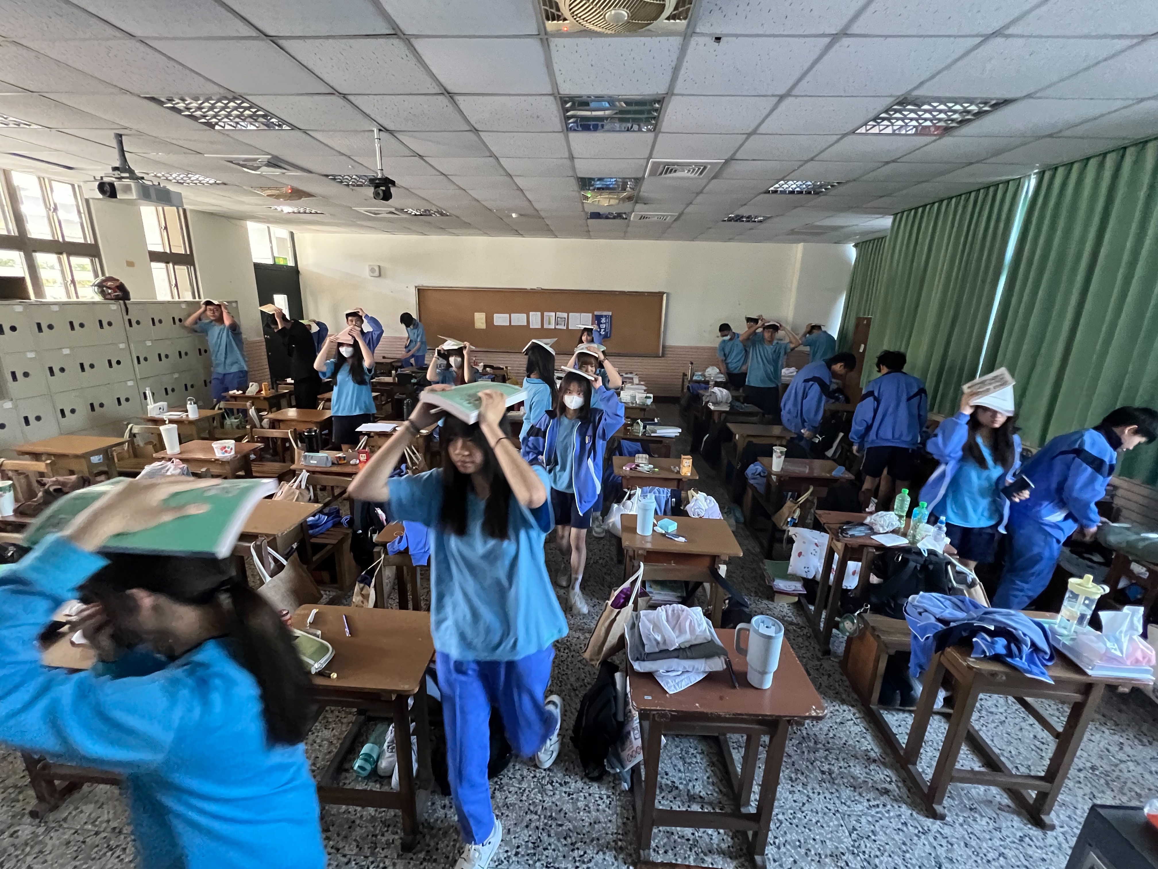 地震避難掩護演練