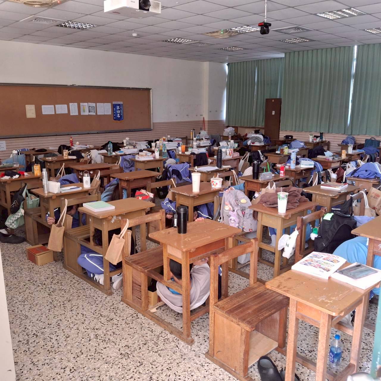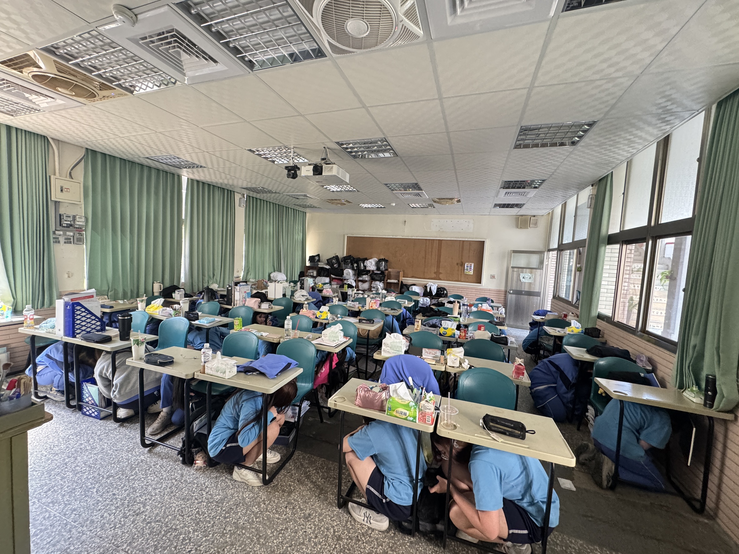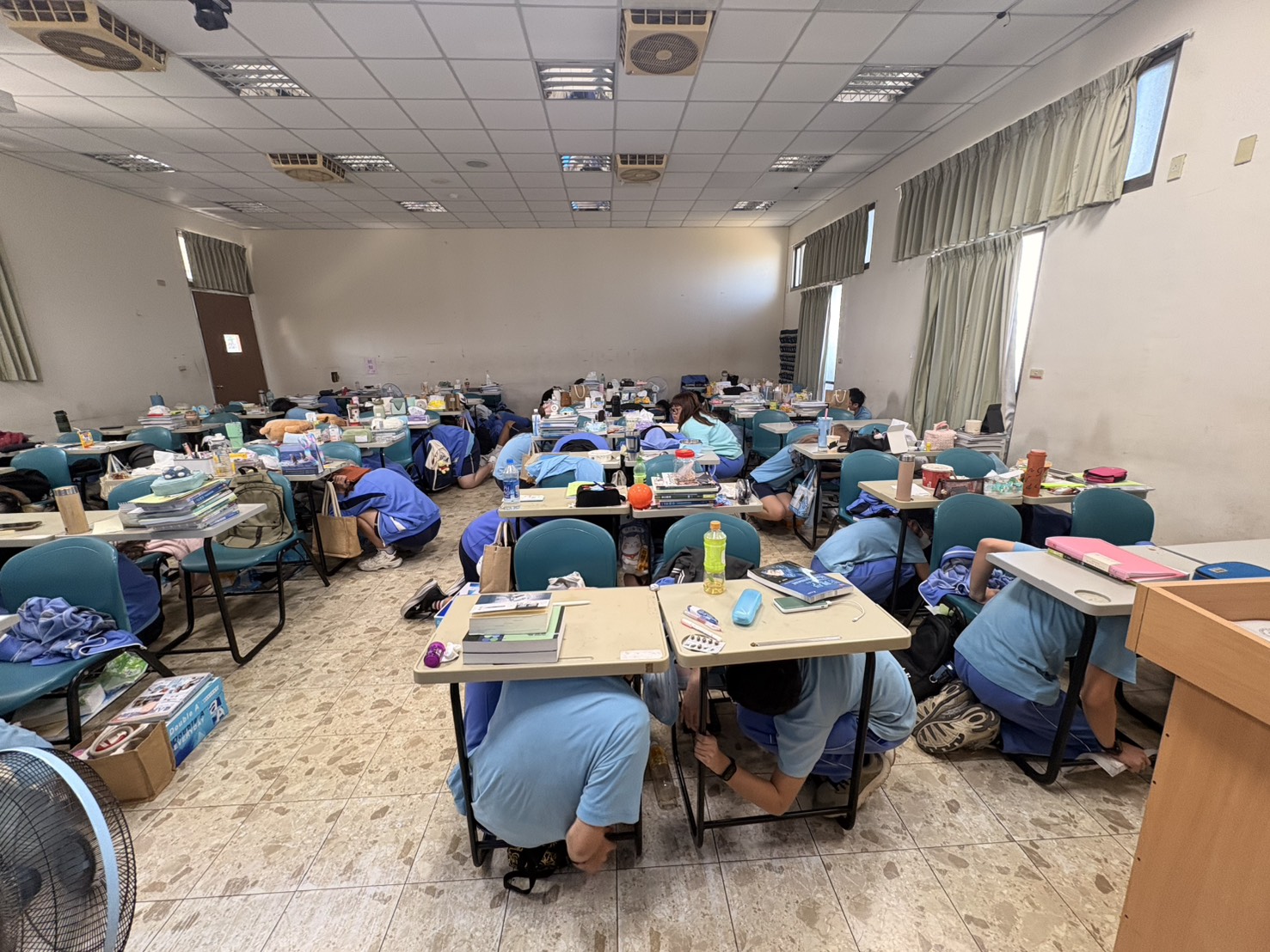 地震避難掩護演練