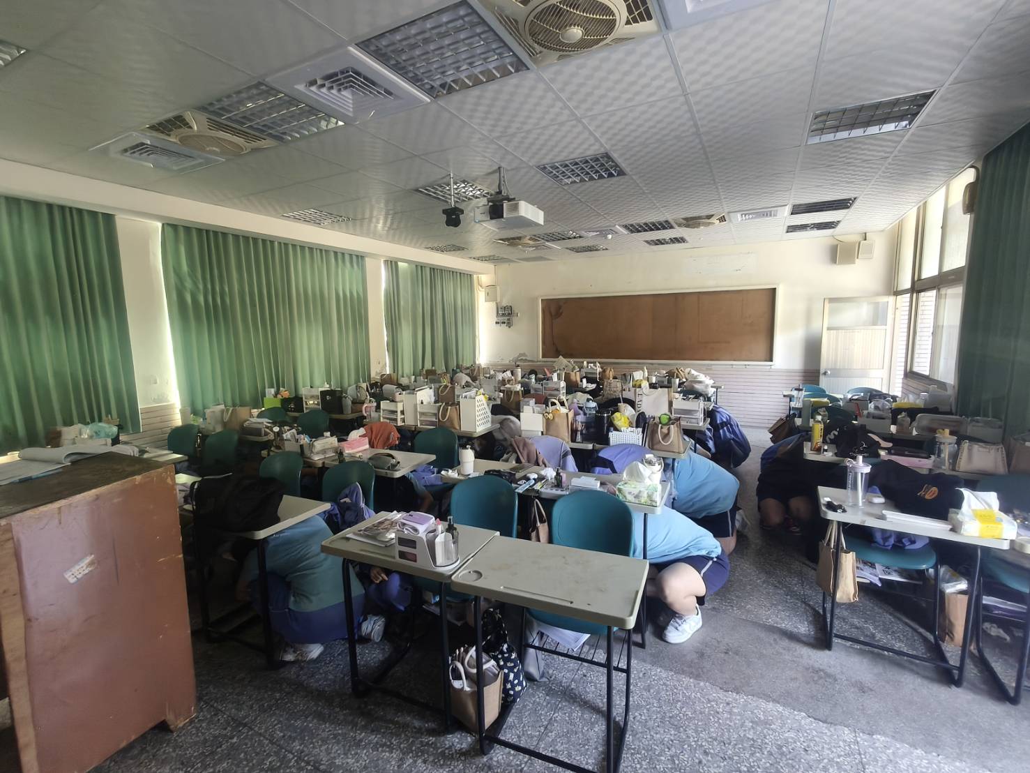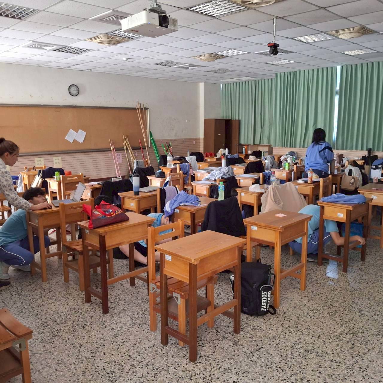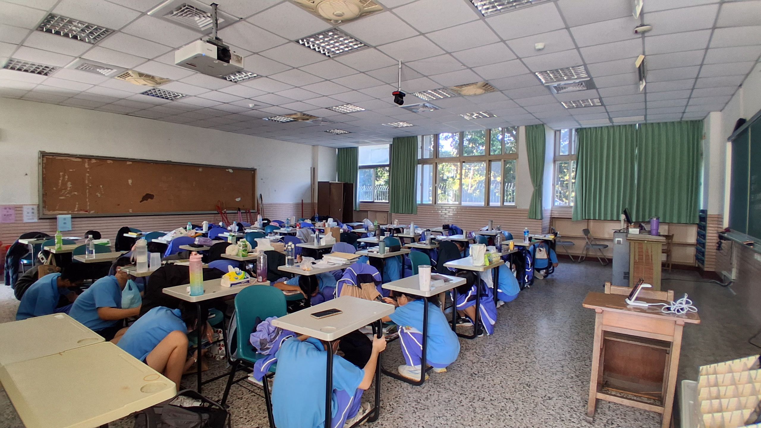 地震避難掩護演練
