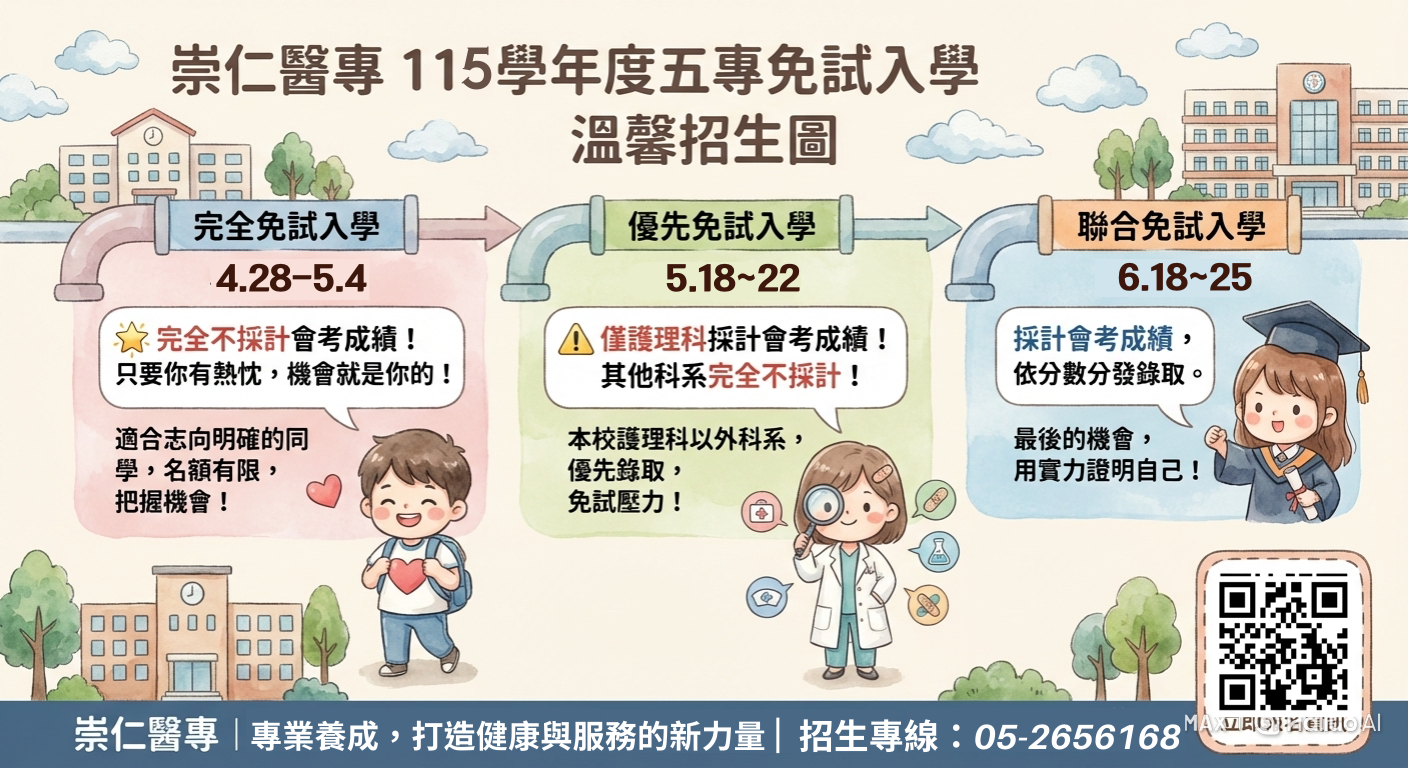 115學年度崇仁醫專五專入學各入學管道說明