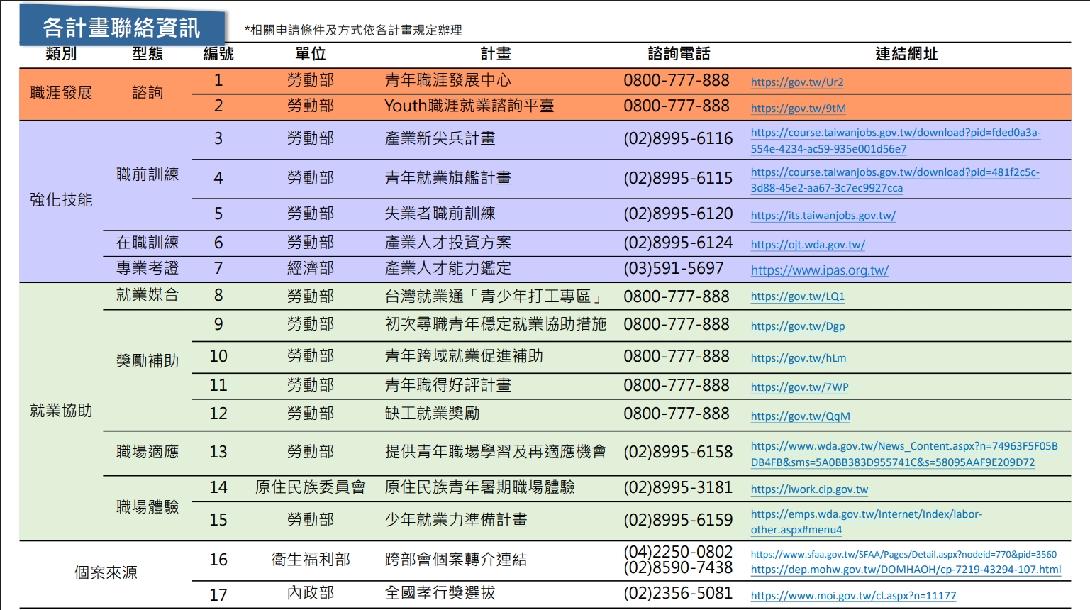 教育部來文-25歲以下年輕成人照顧者就業服務資源地圖