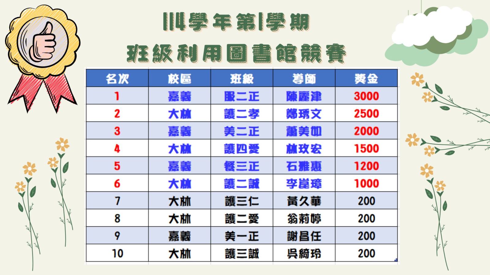 恭喜以下得獎班級!將於結業式當天公開頒獎,詳細安排將另行通知,敬請留意。