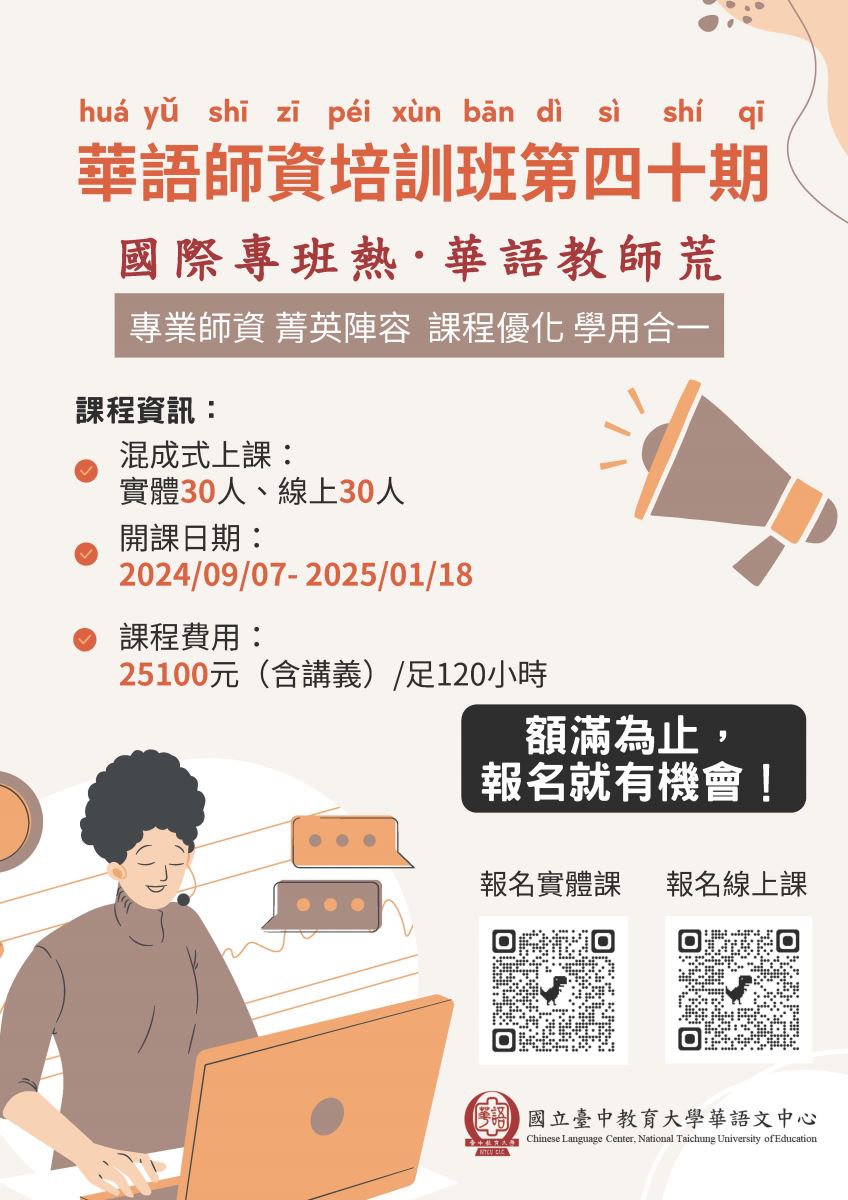 國立臺中教育大學「第40期華語師資培訓班-混成式上課」