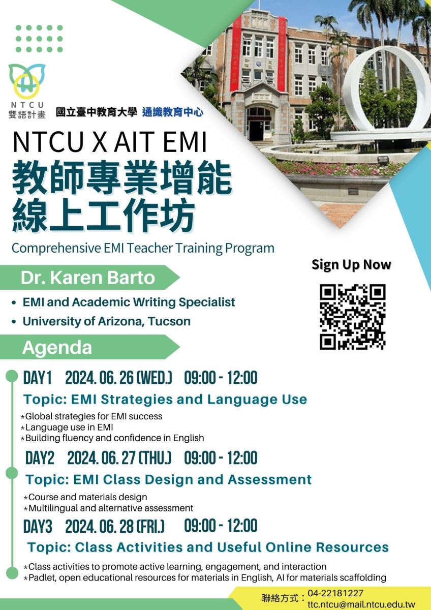 國立臺中教育大學辦理「NTCU x AIT EMI 教師專業增能線上工作坊」